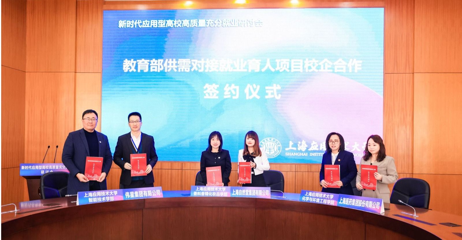 会议现场,还举行教育部供需对接就业育人项目校企合作签约仪式。上海自然堂集团有限公司、上海医药集团股份有限公司、上海伟星集团有限公司三家企业与国产乱码久久久久久红粉影视香料香精化妆品学部、化学与环境工程学院、智能技术学部合作签约,校企携手并进,不断深化协同创新机制,联合培养应用创新型卓越人才。